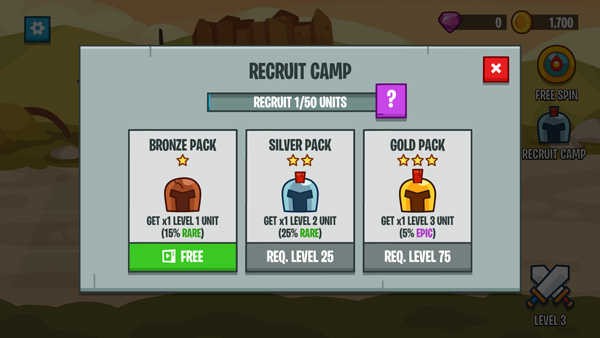 5、随着关卡的增加,敌人会越来越强,你需要通过招募来获得更多的士兵;