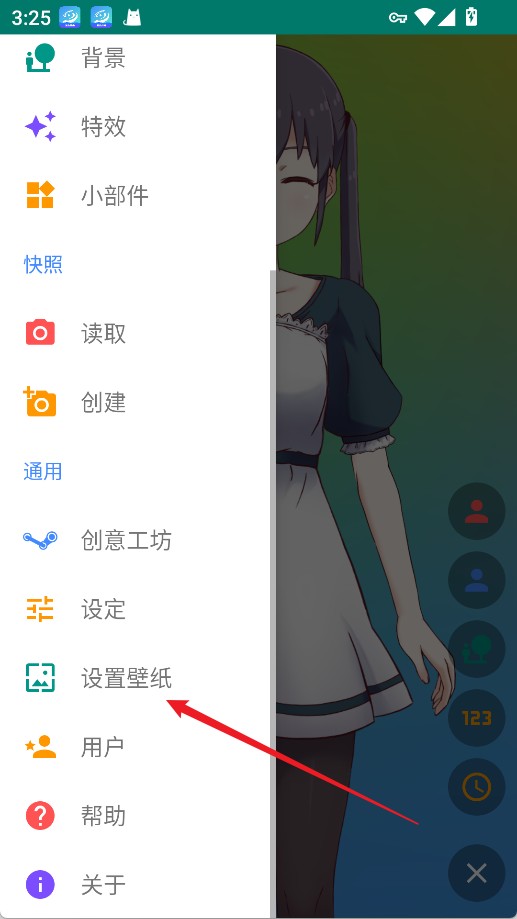 1、同上步骤,也是打开该软件点击左上角的三条杠【菜单】,然后选择下方的【背景】一项,选择需要设为桌面的壁纸。