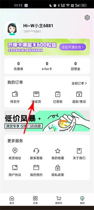 1、点击【我的】找到【e-fun卡】点击