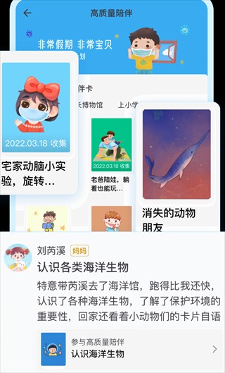 根据3-6岁孩子的身心发展特点,平台设计了系统的家庭陪伴计划,每周一个主题活动,旨在通过亲子互动促进孩子在人际交往、情绪管理、习惯养成等多方面的成长。
