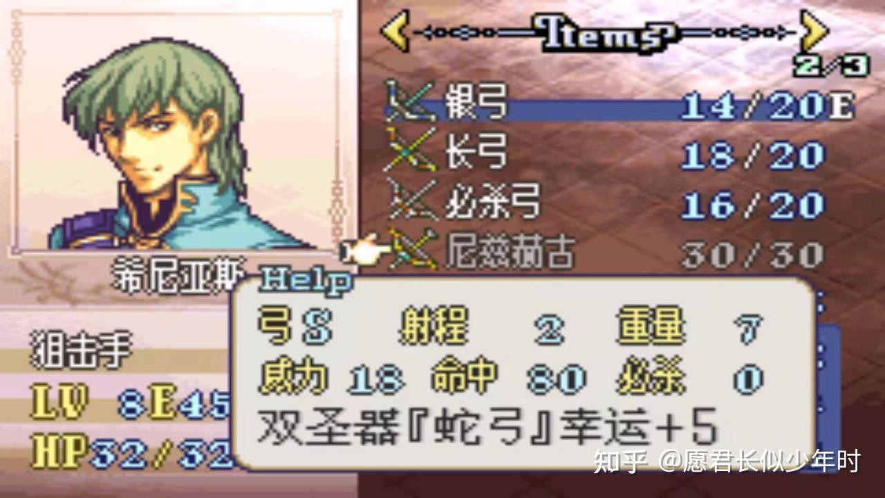 蛇弓尼兹赫古:弗雷利亚王国双圣器之一,幸运+5,第17章通关后得到。