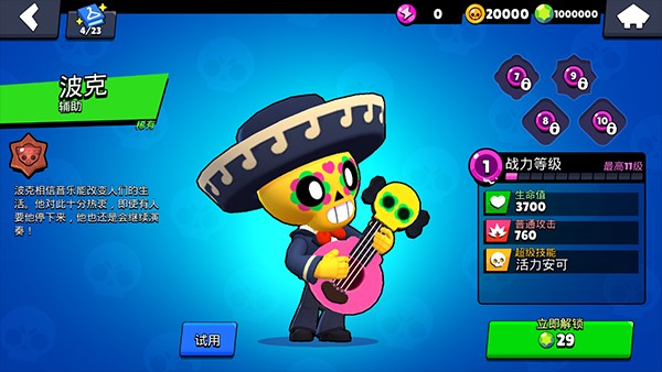 英雄的机制延续了supercell一贯的作风,英雄是需要升级的,每次升级都可以增加血量与伤害,升级需要花费金币与能量,这些都可以从箱子里开出来,每次升级所需要的金币能量如下: