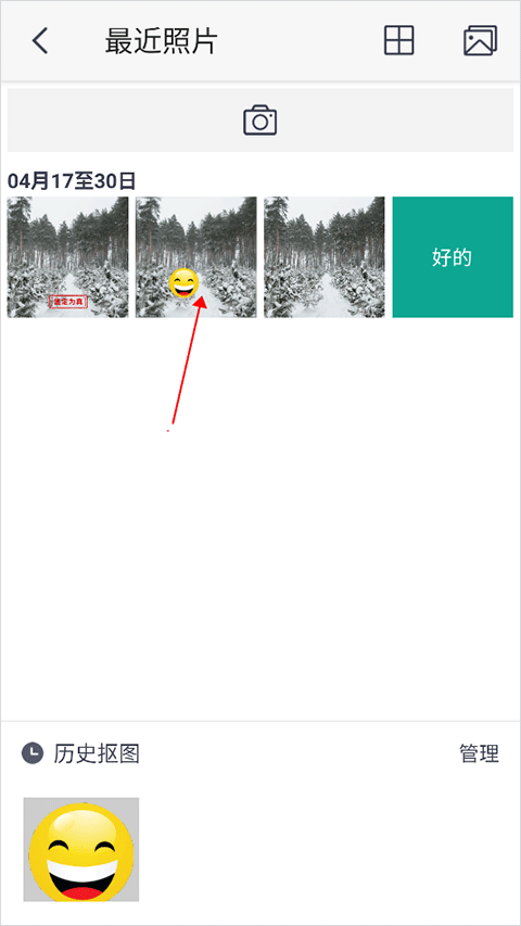 4、然后点击右下角的红色箭头,进入下一步,这就是我们更换天天P图抠图背景的重要部分。