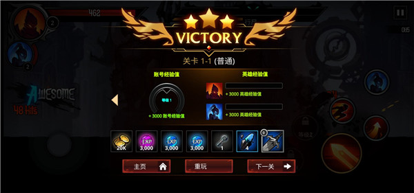 在完成关卡挑战后就能获得系统中丰厚的奖励,你要不断的升级自己的英雄属性,除此之外还能感受到经典的横版暗黑风格,打造了独特的闯关玩法,你要扮演自己的战士并使用火柴人将关卡中的不同怪物全部清除。