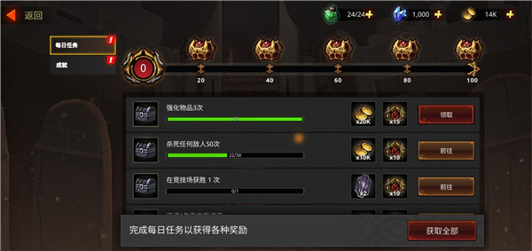 1、首先是不断的完成任务,通关可以获得大量的金币奖励和各种经验
