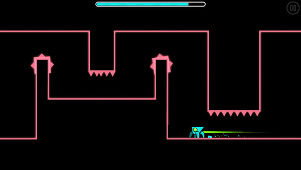 进入游戏前,你必须先要确定自己是否准备完毕了,因为一进入游戏中,你就得做好让方块跳跃障碍物的准备,有人会说缓不过神来的话可以先暂停一下子,但当你按了暂停键后你就会发现你完全看不见方块和障碍、的位置。因此小编认为,在不必要的情况下,尽量不要暂停键,不然继续游戏的那一瞬间,可能就是你重新游戏的时候了。