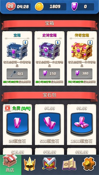 7、在商店还可以购买各种宝箱,这些宝箱需要花费钻石或钥匙进行购买。