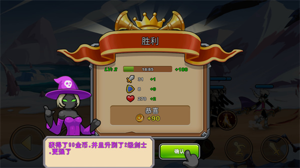 5、与海量的怪物进行战斗,升级你的火柴人,获得更多强大的英雄;
