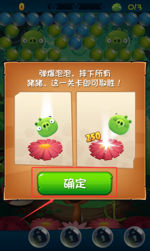 3、点击确定按钮,确认弹爆泡泡摔猪的玩法说明。