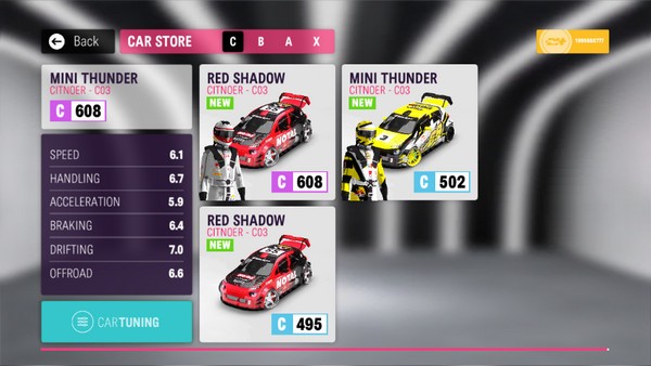 2、这个CAR store是买车的地方吧,比赛赚了金币就可以买新车了