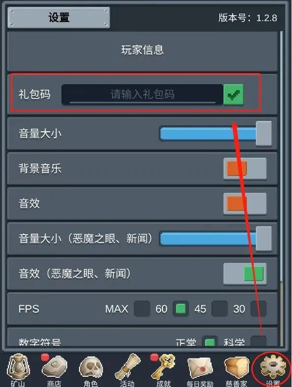 在游戏中“设置界面”,“礼包码”一栏输入上述礼包码,点击绿色的小勾勾。