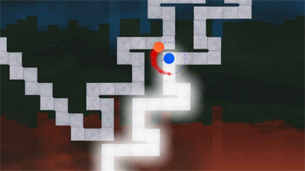 1、玩家使用一个按键(如空格键或点击屏幕)控制红蓝双星,沿音乐节奏变化的蜿蜒道路前进。游戏开始时,系统会测试玩家的节奏感,之后玩家需根据音乐节拍点击按键,使双星沿道路移动。