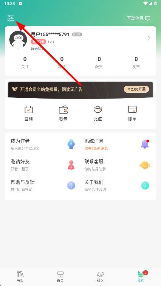 在个人页面左上角找到 「齿轮图标」(设置按钮),点击进入设置菜单。