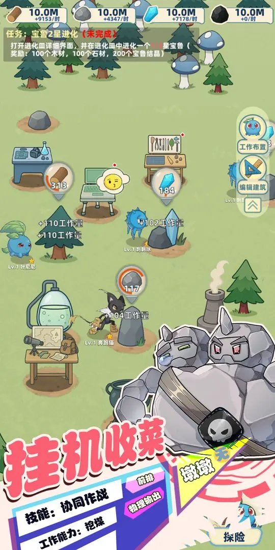 1. 融合抓宠、放置、基地建设等多种玩法,开创独特新颖游戏体验。