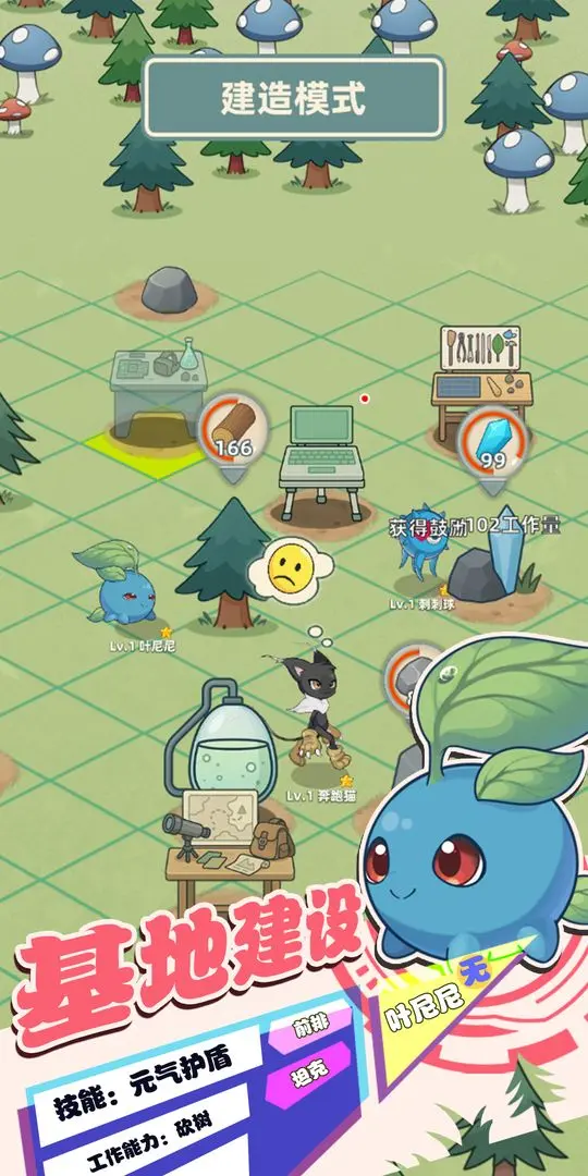 2. 基地建设玩法丰富,十几种建筑自由布局,打造专属个性领地。