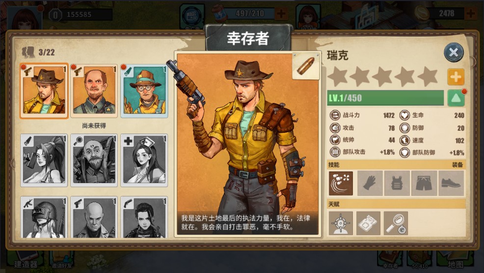 重建生存营地是一款末日题材的模拟经营建造生存策略手游,融合RPG、冒险、生存、管理与制作元素。玩家将化身幸存者领袖,深入末日荒野,探索未知、结盟生还者。在废弃城镇中,需收集资源、建造设施、研发科技,携手团队抵御丧尸,自由规划营地。逐步揭开病毒真相,体验生存与策略的极致碰撞。