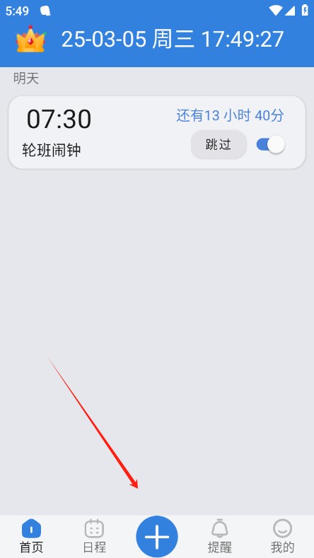 3.添加闹钟:在软件界面点击“+”号按钮,开启添加新闹钟的操作。