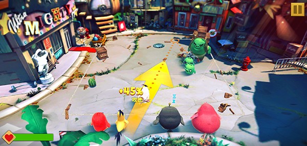 1. 拖动小鸟如发射弹珠,瞄准目标精准攻击,摧毁猪猪防线。