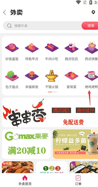 下载安装后,打开App → 点击首页 “外卖” 入口。