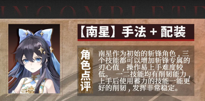 1、南星(新手必养):正面破防能力强,推图效率高,极易上手