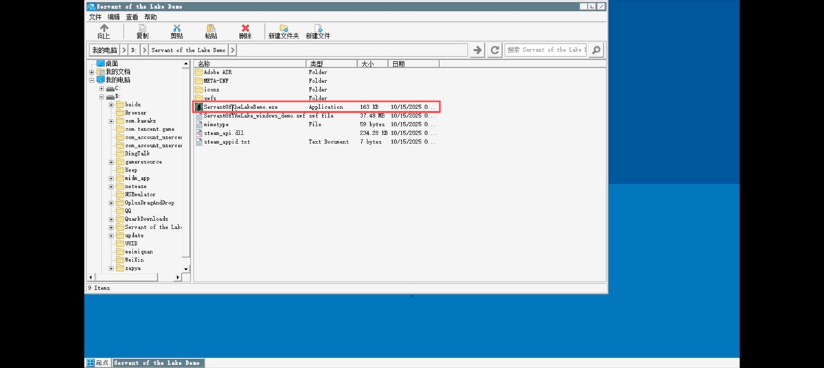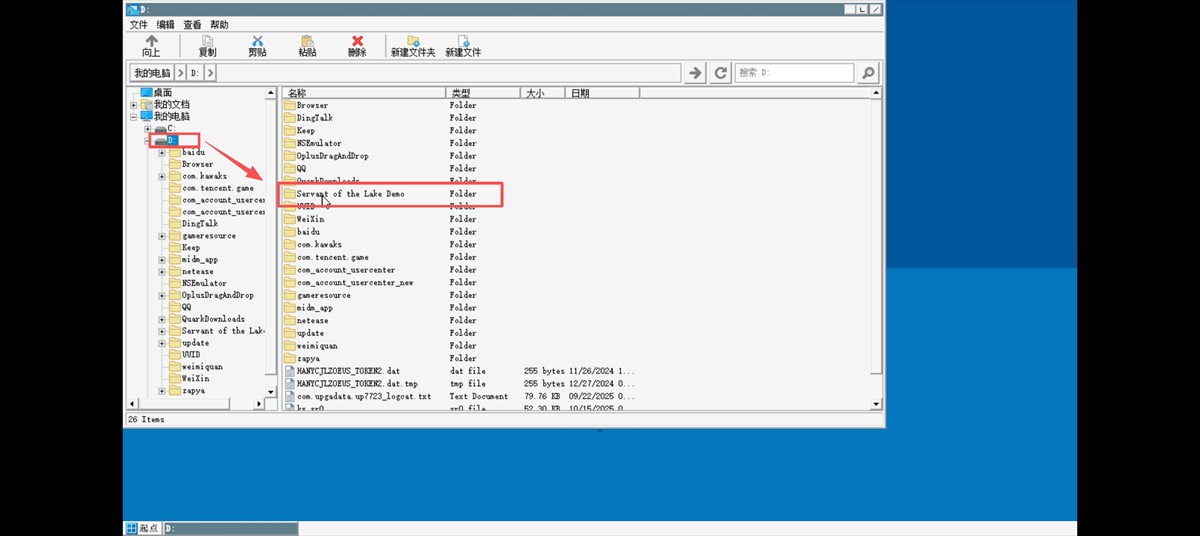 5、成功启动之后,找到D盘/Servant of the Lake Demo
