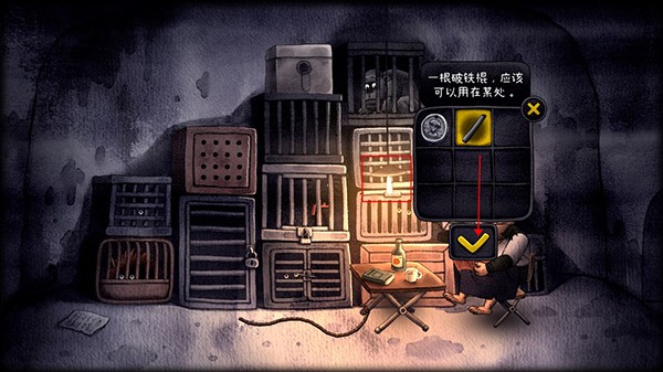 5、随后切换到放大镜视角,回到外部,点击灯光,利用铁管敲灭灯,灯灭后看守者会离开。
