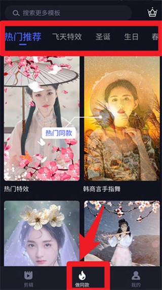 2.套用模板:在“剪同款”专区浏览热门特效模板,一键套用生成同款风格视频。