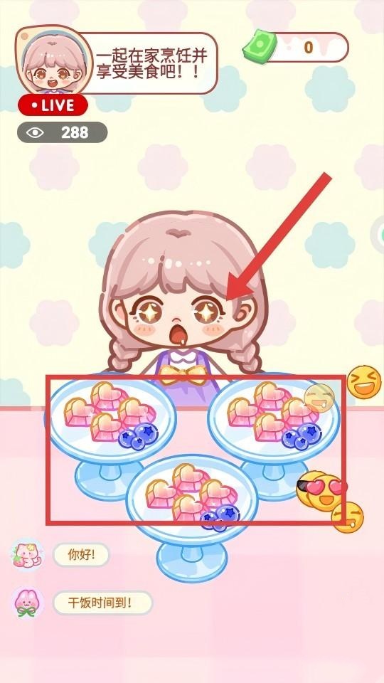 2. 直播时依观众期望吃甜点、完成挑战,获取奖励,增强游戏动力。
