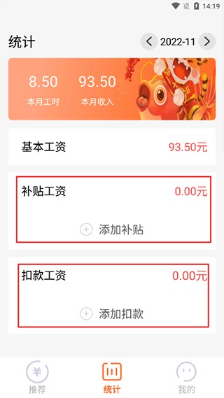 支持添加补贴和扣款信息,助力理财规划。