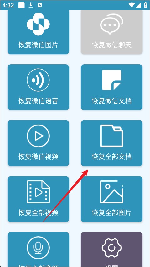 打开恢复软件 → 在首页点击「恢复全部文档」选项(或类似功能入口)。