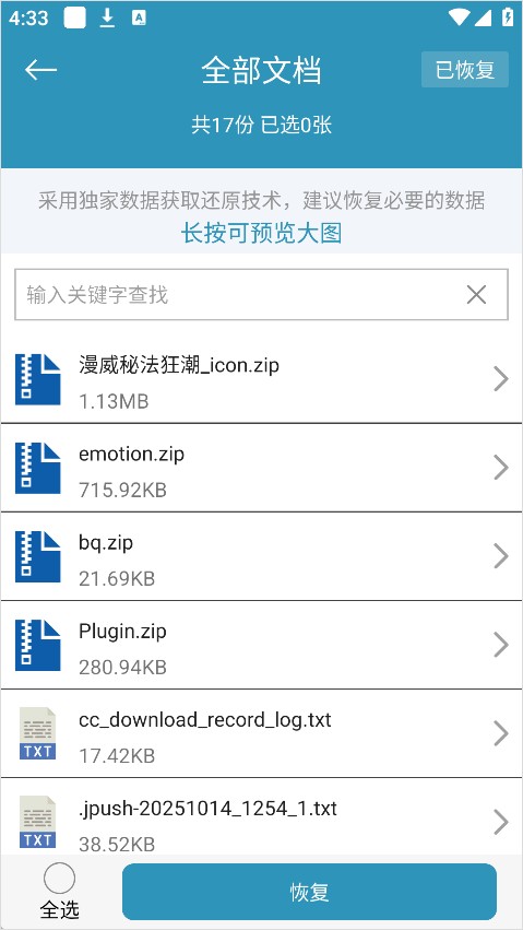 3.一键恢复文档