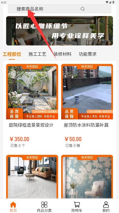 进入首页后,你会看到顶部的 搜索栏。在这里输入你想购买的商品名称(比如“地板”“灯具”)或相关关键词,点击搜索按钮。App会立刻显示匹配的商品列表,你可以逐个浏览挑选。