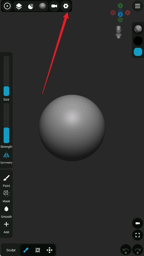 1.打开Sculpt+建模软件,点顶部齿轮“设置”图标。