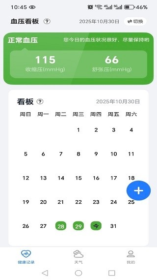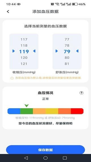 2.系统会自动显示当前血压是正常、偏低还是偏高。