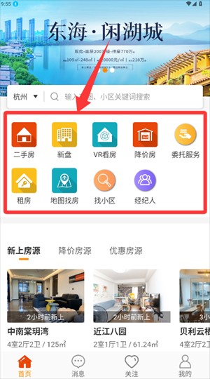 1.点“开始使用”进主界面,看看二手房等功能入口。