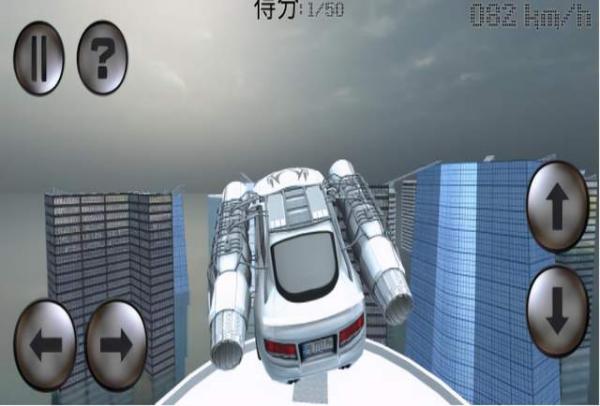 一打开游戏便是一辆造型别致的汽车,汽车上面装着两个硕大的喷气筒,正如其名,这勉强可以定义为一辆飞车。