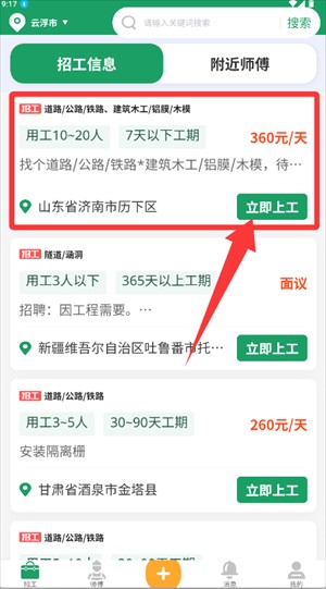 2.在招工找活区,选招工或求职选项。