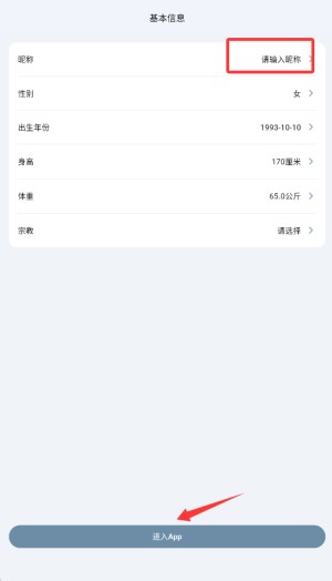 1.当用户初次打开Weipofit应用时,应用会指引用户填写个人健康档案的基本信息。