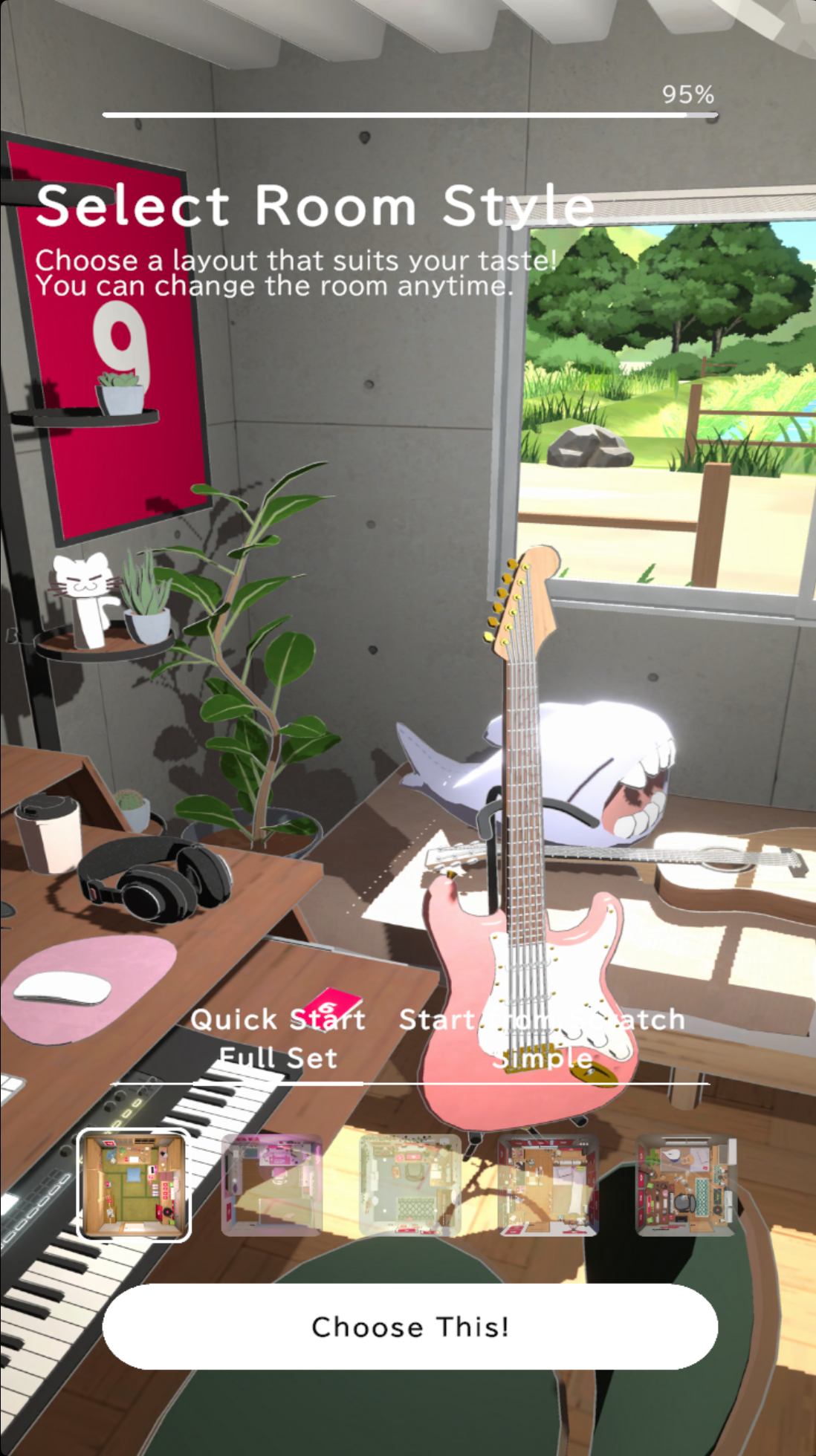 3、先选择一个自己喜欢的房间,一共有五种不同风格的房间,选择完成之后就正式进入,可以看到角色坐在桌子面前。