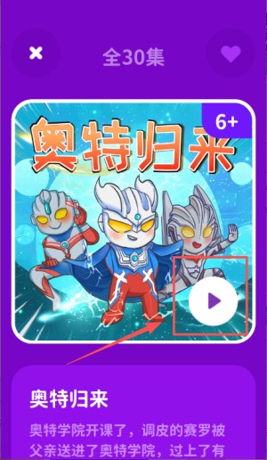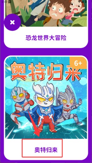 3.在板块里挑感兴趣的内容,比如“奥特归来”,进入详情页。