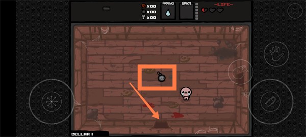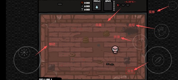 5、进入门内就可以看见敌人,移动角色探索房间,同时选择攻击方向发射眼泪攻击敌人,注意控制走位,避免被敌人碰触,否则会损失血量。