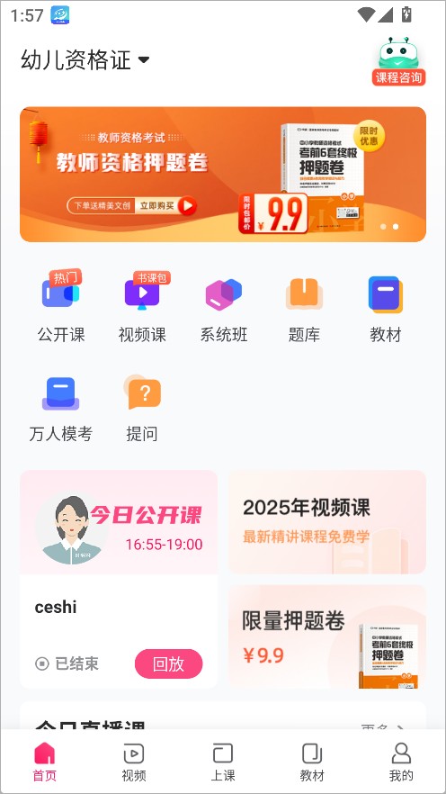 展示最新考试消息、推荐热门课程,还有学习计划入口,让考生快速掌握考试动态和重点,一键开启学习。