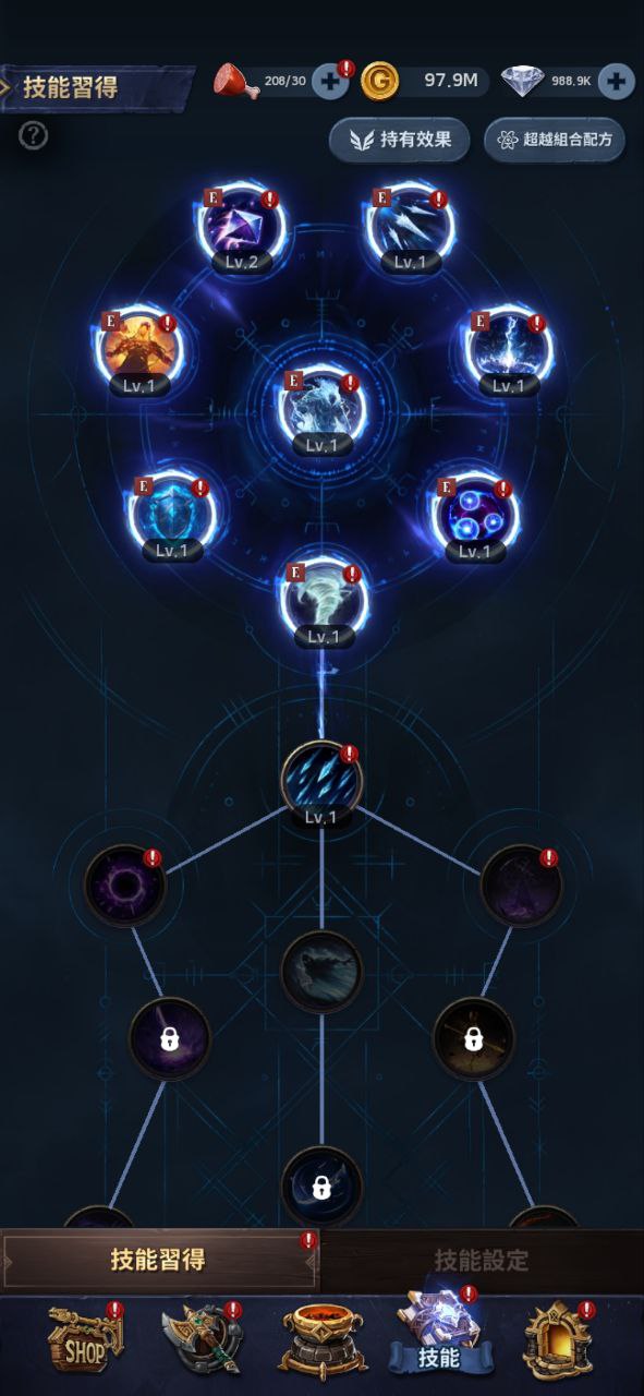 可使用「技能强化石」提升技能经验值并进行技能升级。