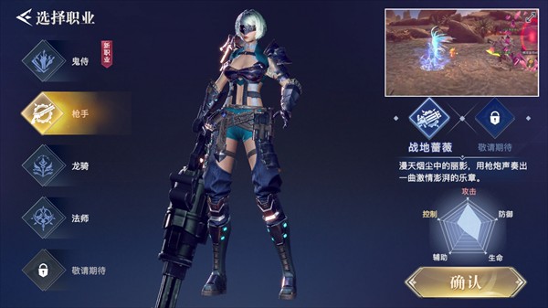 特色:武器手炮、重炮,远程攻击,未来风技能(导弹、电磁炮、火焰喷射器应有尽有),体术