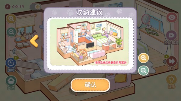 4、如“搬家日记”关卡中,玩家需利用游戏提供的整理与摆放道具,对房间进行合理规划与打理。