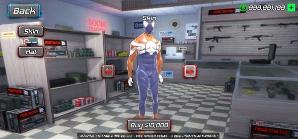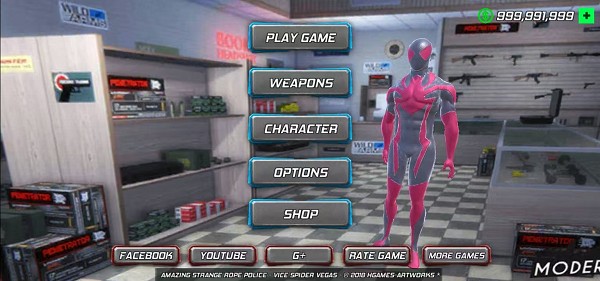 1、打开钢铁蜘蛛侠进入主菜单,可以看到右上角已解锁无限金币,点击WEAPONS/武器、CHARACTER/角色皮肤进入;
