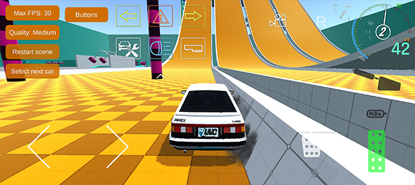 3、进入之后,可以直接开始游戏,点击左下角控制车辆的左右方向,右下角控制车辆的前进和后退;