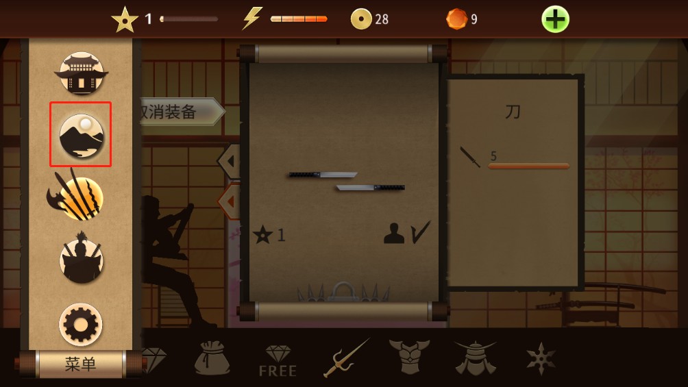 4、回到主页面后,需要先为自己找一件武器,点击菜单;