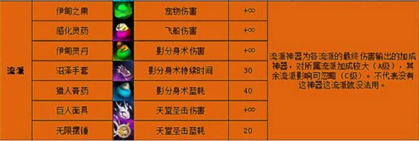 增加所有英雄与点击伤害。对于所有流派是通用地强大,尤其是天堂流、影分身流与宠物流。
