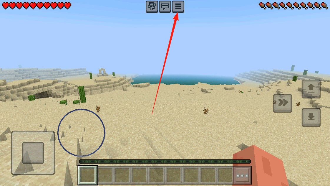 1、打开我的世界基岩版,进入世界,然后点击上方按键